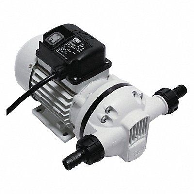 Electric Operated Drum Pump Voltage 120VAC Hz 60 Phase 1 HP 43/64 Motor RPM 1 400 RPM Motor Enclosure MEC Motor Type Permanent T Capcitor Housing Material Cast Iron Wetted Materials Delrin EPDM Nylon NBR Stainless steel For Use With 50/50 Antifreeze Diesel Exhaust Fluid GPM 9 Max Pressure 23 psi Max Viscosity 1 cps Max GPM for Water 9 Inlet Size 3/4 in Outlet Size 1 in Metered No Adapter Type PDC Adapter Material Polypropylene Stainless Steel