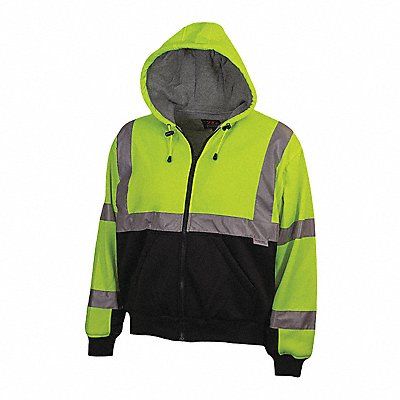 Sweatshirt ANSI Class 3 ANSI Type R Back Stripe Pattern X Sweatshirt Style Safety Sweatshirt Number of Outside Pockets 2 Material Polyester Front Closure Type Zipper Color Green Fabric Weight 16 oz Size 5XL Features Systems Gear Includes Hood Yes Standards ANSI ISEA Maximum Chest Size 73 in Cuff Style Elastic Hood Features Drawstring Closure Includes Lining Yes Length 30 in