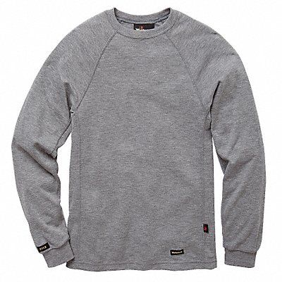 ATPV Rating 8.2 cal/sq cm Arc Flash PPE Category 2 Collar Style Lay-Flat Color Heather Gray Fabric Weight 6.7 oz Features Flat-Lock Seams for Comfort Moisture Wicking Raglan Sleeves and Side Gusset Ribbed-Knit Collar and Cuffs Closure Type Pullover Gender Men s Flame-Resistant Crewneck Shirt Material Trade Name 20 Percent Aramid 35 Percent Lyocell 45 Percent Modacrylic Maximum Chest Size 50 in Neck Style Collar Number of Pockets 1 Size 2X-Large Sleeve Length 38 in