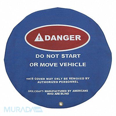 Lockout Steering Wheel Cover Cover Color Blue Cover Material Fabric Hole Diameter 1/2 in Lockable Yes Outside Diameter 24 in Header Danger Legend Do Not Start or Move Vehicle Maximum Number of Padlocks 1 Resistance Properties Water Resistant Standards ANSI OSHA