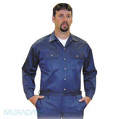 ATPV Rating 8.1 cal/sq cm Arc Flash PPE Category 2 Color Navy Fabric Weight 8 oz Closure Type Buttons Flame-Resistant Collared Shirt Material Trade Name Vinex(R) Maximum Chest Size 47 in Minimum Chest Size 44 in Neck Style Collar Number of Pockets 2 Size L Sleeve Length 34 in