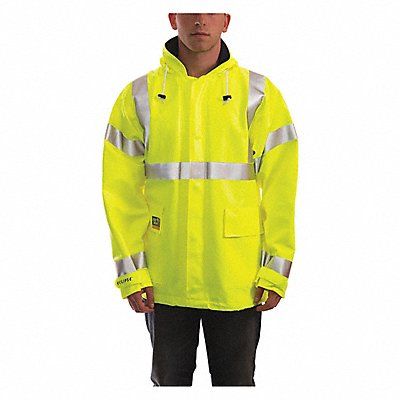J2256 ANSI Class 3 ATPV Rating 8.7 cal/sq cm Arc Flash PPE Category 2 Closure Type Zipper Collar Style Stand-Up Color Lime Cuff Style Hook-and-Loop Fabric Weight 11.3 oz Features 2 in Silver Reflective Tape Reflects Light for 360 Degrees Nighttime Conspicuity Non-Conductive Non-Corrosive Hardware Overhead Shoulder Design for Complete Freedom of Movement While Working Overhead Therm-O-Rad Sealed Seams for 100 Percent Liquid Proof Protection Gender Men s High-Visibility Yes