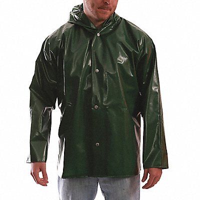 D8968 Rain Jacket with Hood Garment Type Rain Jacket Style Rain Jacket Size XL Number of Inside Pockets 0 Number of Outside Pockets 0 Color Green Front Closure Type Snaps with Storm Flap Gender Unisex Material Nylon/Polyurethane High-Visibility No ANSI Class Not Rated Insulated for Cold Conditions No Back Stripe Pattern None Includes Hood Yes Hood Style Attached Length 31 in Length Type Hip Includes Removable Liner No Includes Lining Yes Maximum Chest Size 50 in