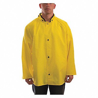 Rain Jacket Garment Type Rain Jacket Size 2XL Number of Inside Pockets 0 Number of Outside Pockets 0 Color Yellow Front Closure Type Snap Storm Flap Gender Unisex Material Polyurethane High-Visibility No ANSI Class Not Rated Includes Hood No Hood Style None Length 32 in Length Type Hip Lining Material Nylon Features Chemical Resistant Wind Resistant Standards ASTM E96 Thickness 9 mil