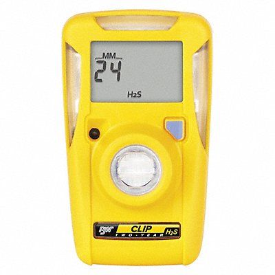 Single Gas Monitor Gas Type H2S Detects Hydrogen Sulfide Sensor Range 0 to 100 ppm Resolution 1 ppm Housing Color Yellow Operating Temp Range -40 Degrees to +122 Degrees F/-40 Degrees to +50 Degrees C Alarm Setting Low 10 ppm High 15 ppm Alarm Type Audible Visual and Vibrating Battery Type Lithium Battery Life 2 yr Display LCD Interchangeable Sensors No Height 3 7/16 in Width 2 in Depth 1 5/8 in