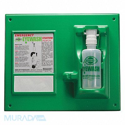 Single Use Eyewash Station Bottle Size 16 oz Features Instruction Diagrams Housing Height 15 in Housing Width 17 1/2 in Includes (1) 16 oz Empty Eyewash Bottle Number of Bottles Included 1 Color Green Housing Included Yes