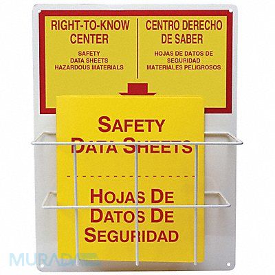 Right to Know Center Binder Holder Material Steel Binder Material Plastic Binder Ring Size 1 1/2 in Clipboard Material Not Applicable Document Storage Component Color White Hazard Communication Standard OSHA Included Hardware 1 1/2 in Binder 36 in Metal Security Chain Backboard Wire Basket Included Supplemental Materials Not Applicable Language English Spanish Mounting Hardware Included No Mounting Style Wall-Mount Number of Binder Holders 1 Number of Binders Included 1