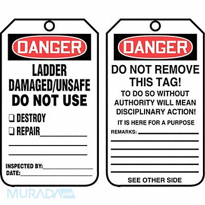 Tag Compatible Tag Holder Mfr Part Number TSS910 Compatible Tag Insert Mfr Part Number Not Applicable Fastener Attachment Length Not Applicable Fastener Type Not Applicable Header Wording (Reverse Side) Danger Header Wording Danger Height 5 3/4 in Indoor/Outdoor Usage Indoor/Outdoor Lamination Type Not Laminated Language English Mounting Hole Reinforcement Type No Grommet Mounting Hole Size 3/8 in Number of Tags 25 Preprinted Images (Reverse Side) Lines for Filling Out Remarks