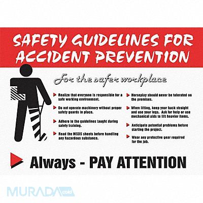 Poster Shape Horizontal Rectangle Safety Banner Legend Safey Guidelines For Accident Prevention For The Safer Workplace Sign Legend Style Symbol and Text Printed Language English Background Color White Number of Printed Sides 1 Width 22 in Height 17 in Thickness 0.024 in