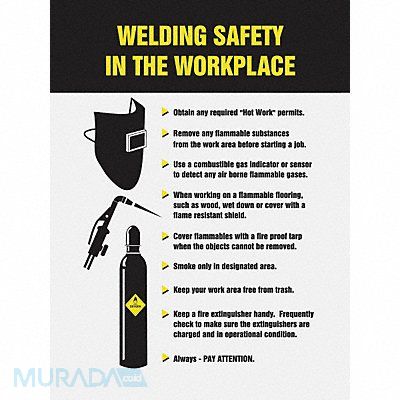 Poster Shape Vertical Rectangle Safety Banner Legend Welding Safety In The Work Place Sign Legend Style Symbol and Text Printed Language English Background Color White Number of Printed Sides 1 Width 17 in Height 22 in Thickness 0.024 in