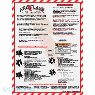 Poster Shape Vertical Rectangle Safety Banner Legend Arc Flash Protection Sign Legend Style Symbol and Text Printed Language English Background Color White Number of Printed Sides 1 Width 17 in Height 22 in Thickness 0.024 in