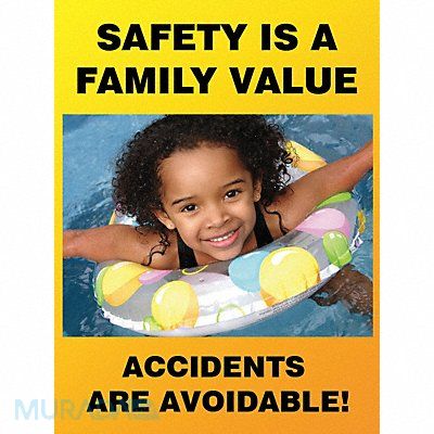 Poster Shape Vertical Rectangle Safety Banner Legend Safety Is A Family Value Accidents Are Avoidable Sign Legend Style Symbol and Text Printed Language English Background Color Yellow Number of Printed Sides 1 Width 17 in Height 22 in Thickness 0.024 in