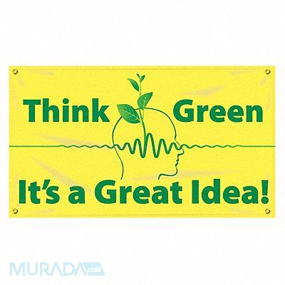 Banner Shape Horizontal Rectangle Safety Banner Legend Think Green It S A Great Idea Sign Legend Style Symbol and Text Printed Language English Background Color Yellow Number of Printed Sides 1 Width 48 in Height 28 in Thickness 0.013 in