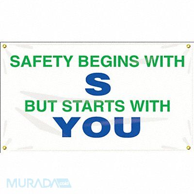 Banner Shape Horizontal Rectangle Safety Banner Legend Safety Begins With S But Starts With You Sign Legend Style Text Printed Language English Background Color White Number of Printed Sides 1 Width 48 in Height 28 in Thickness 0.013 in