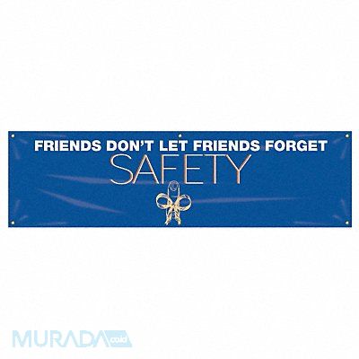 Banner Shape Horizontal Rectangle Safety Banner Legend Friends Don T Let Friends Forget Safety Sign Legend Style Symbol and Text Printed Language English Background Color Blue Number of Printed Sides 1 Width 96 in Height 28 in Thickness 0.013 in