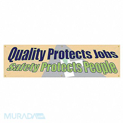 Banner Shape Horizontal Rectangle Safety Banner Legend Quality Protects Jobs. Safety Protects People Sign Legend Style Symbol and Text Printed Language English Background Color Orange Number of Printed Sides 1 Width 96 in Height 28 in Thickness 0.013 in