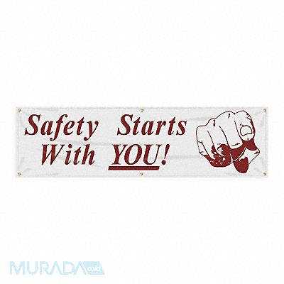 Banner Shape Horizontal Rectangle Safety Banner Legend Safety Starts With You Sign Legend Style Symbol and Text Printed Language English Background Color White Number of Printed Sides 1 Width 96 in Height 28 in Thickness 0.013 in