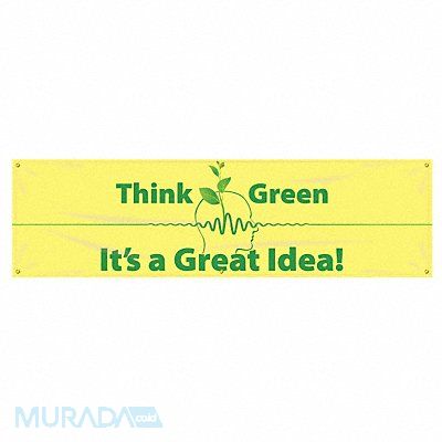 Banner Shape Horizontal Rectangle Safety Banner Legend Think Green It S A Great Idea Sign Legend Style Symbol and Text Printed Language English Background Color Yellow Number of Printed Sides 1 Width 96 in Height 28 in Thickness 0.013 in