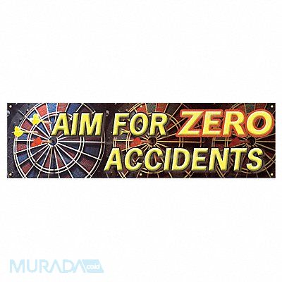 Banner Shape Horizontal Rectangle Safety Banner Legend Aim For Zero Accidents Sign Legend Style Symbol and Text Printed Language English Background Color Black Number of Printed Sides 1 Width 96 in Height 28 in Thickness 0.013 in