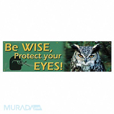 Banner Shape Horizontal Rectangle Safety Banner Legend Be Wise Protect Your Eyes! Sign Legend Style Symbol and Text Printed Language English Background Color Green Number of Printed Sides 1 Width 96 in Height 28 in Thickness 0.013 in