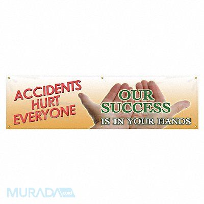 Banner Shape Horizontal Rectangle Safety Banner Legend Accidents Hurt Everyone. Our Success Is In Your Hands Sign Legend Style Symbol and Text Printed Language English Background Color Orange Number of Printed Sides 1 Width 96 in Height 28 in Thickness 0.013 in