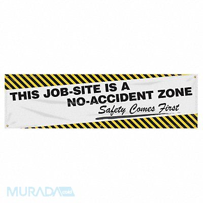 Banner Shape Horizontal Rectangle Safety Banner Legend This Job-Site Is A No Accident Zone Safety Comes First Sign Legend Style Symbol and Text Printed Language English Background Color White Number of Printed Sides 1 Width 96 in Height 28 in Thickness 0.013 in