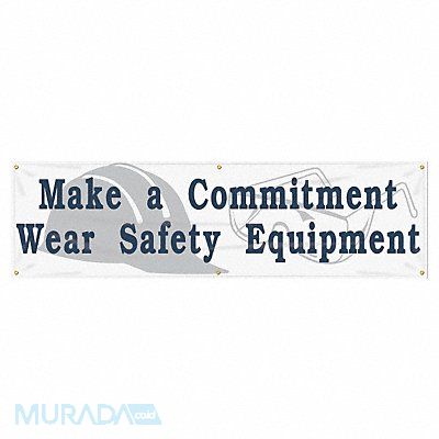 Banner Shape Horizontal Rectangle Safety Banner Legend Make A Commitment Wear Safety Equipment Sign Legend Style Symbol and Text Printed Language English Background Color White Number of Printed Sides 1 Width 96 in Height 28 in Thickness 0.013 in