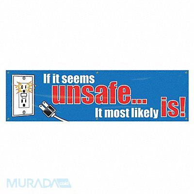 Banner Shape Horizontal Rectangle Safety Banner Legend If It Seems Unsafe...It Most Likely Is! Sign Legend Style Symbol and Text Printed Language English Background Color Blue Number of Printed Sides 1 Width 96 in Height 28 in Thickness 0.013 in