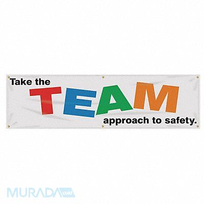 Banner Shape Horizontal Rectangle Safety Banner Legend Take The Team Approach To Safety Sign Legend Style Text Printed Language English Background Color White Number of Printed Sides 1 Width 96 in Height 28 in Thickness 0.013 in