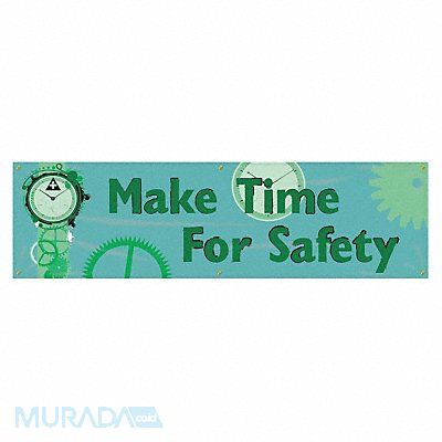 Banner Shape Horizontal Rectangle Safety Banner Legend Make Time For Safety Sign Legend Style Symbol and Text Printed Language English Background Color Blue Number of Printed Sides 1 Width 96 in Height 28 in Thickness 0.013 in