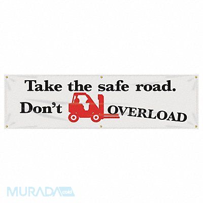 Banner Shape Horizontal Rectangle Safety Banner Legend Take The Safe Road. Don T Overload Sign Legend Style Symbol and Text Printed Language English Background Color White Number of Printed Sides 1 Width 96 in Height 28 in Thickness 0.013 in