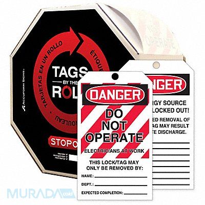 Danger Tag By The Roll Front Side Legend Do Not Operate Header Danger Language English Legend Type Text Number of Printed Sides 2 Overall Height 6 1/4 in Overall Width 3 in Reverse Side Legend This Energy Source is Locked Out Sign Background Color Red/White Sign Material Polyolefin Sign Out Sections Add Notes Date Sign Signage Type Tag Write-On Surface Yes For Location Indoor Outdoor Grommet Material No Grommet Header Background Color Black/Red/White Header Text Color White