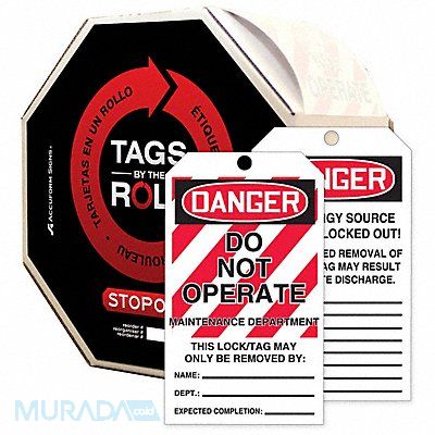 Danger Tag By The Roll Front Side Legend Do Not Operate Header Danger Language English Legend Type Text Number of Printed Sides 2 Overall Height 6 1/4 in Overall Width 3 in Reverse Side Legend This Energy Source is Locked Out Sign Background Color Red/White Sign Material Polyolefin Sign Out Sections Add Notes Date Sign Signage Type Tag Write-On Surface Yes For Location Indoor Outdoor Grommet Material No Grommet Header Background Color Black/Red/White Header Text Color White