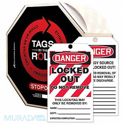 Danger Tag By The Roll Front Side Legend Locked Out Device Header Danger Language English Legend Type Text Number of Printed Sides 2 Overall Height 6 1/4 in Overall Width 3 in Reverse Side Legend This Energy Source is Locked Out Sign Background Color Red/White Sign Material Polyolefin Sign Out Sections Add Notes Date Sign Signage Type Tag Write-On Surface Yes For Location Indoor Outdoor Grommet Material No Grommet Header Background Color Black/Red/White