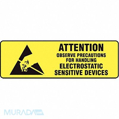 Label Vertical Rectangle English Sign Legend Attention Observe Precautions For Handling Electrostatic Sensitive Devices Sign Legend Background Color Yellow Sign Legend Style Symbol and Text Package Quantity 500