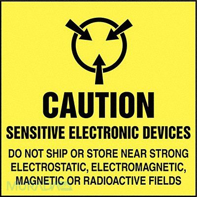 Label Vertical Rectangle English Sign Legend Caution Sensitive Electronic Devices Do Not Ship or Store Near Strong Electrostatic Electromagnetic Magnetic or Radioactive Fields Sign Legend Background Color Yellow Sign Legend Style Symbol and Text Package Quantity 500