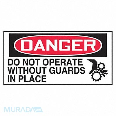 Safety Label Horizontal Rectangle Number of Printed Sides 1 English Sign Format Traditional OSHA Sign Legend Do Not Operate Without Guards In Place Sign Legend Background Color White Sign Legend Style Symbol and Text Package Quantity 10