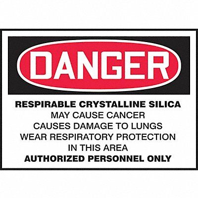 Safety Label Horizontal Rectangle Number of Printed Sides 1 English Sign Format Traditional OSHA Sign Legend Respirable Crystalline Silica May Cause Cancer Causes Damage To Lungs Wear Respiratory Protection In This Area Authorized Personnel Only Sign Legend Background Color White Sign Legend Style Text Package Quantity 5