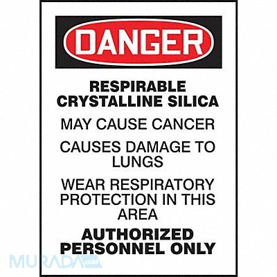 Safety Label Vertical Rectangle Number of Printed Sides 1 English Sign Format Traditional OSHA Sign Legend Respirable Crystalline Silica May Cause Cancer Causes Damage To Lungs Wear Respiratory Protection In This Area Authorized Personnel Only Sign Legend Background Color White Sign Legend Style Text Package Quantity 5