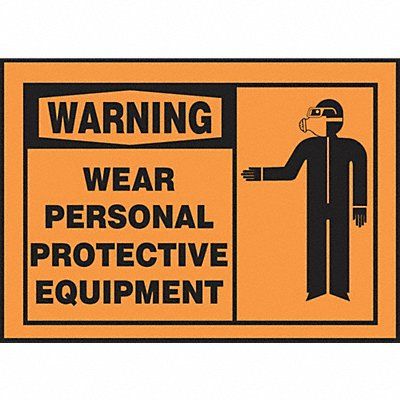 Safety Label Horizontal Rectangle Number of Printed Sides 1 English Sign Format Traditional OSHA Sign Legend Wear Personal Protective Equipment Sign Legend Background Color Orange Sign Legend Style Symbol and Text Package Quantity 5