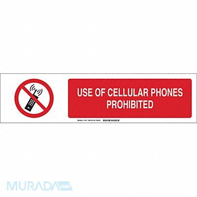 Slider Insert Horizontal Rectangle English Sign Format ANSI/OSHA Format Sign Legend Use Of Cellular Phones Prohibited Sign Legend Background Color White Sign Legend Text Color Black Red Sign Legend Style Symbol and Text Height 6 in Width 23 7/8 in