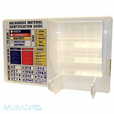 Label Station Binder Holder Material Acrylic Document Storage Component Color White Hazard Communication Standard HMIG Included Hardware Not Applicable Included Supplemental Materials Not Applicable Language English Mounting Hardware Included No Mounting Style Wall-Mount Overall Height 11 in Overall Width 18 in Preprinted Text Hazardous Material Identification Guide Product Type Large Label Station Station Color White Subject Matter Label Holder Text Color White