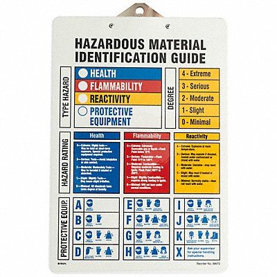 Clipboard Clipboard Material Plastic Hazard Communication Standard HMIG Included Hardware Not Applicable Included Supplemental Materials Not Applicable Language English Mounting Hardware Included No Overall Height 13 in Overall Width 9 in Preprinted Text Hazardous Material Identification Guide┐ Product Type Clipboard Standards UNSPC 44122012 Compliant with Directive 2011/65/EU and 2015/863