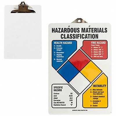 Clipboard Hazard Communication Standard NFPA Included Hardware Not Applicable Included Supplemental Materials Not Applicable Language English Mounting Hardware Included No Overall Height 13 in Overall Width 9 in Product Type Clipboard Standards UNSPC 44122012