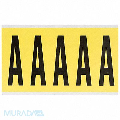 Letter Label Adhesive Type Removeable and Repositionable Adhesive Application General Identification Wire and Cable Labeling APWA Compliant Color No Background Color Yellow Character Color Black Character Color Gradient Solid Color Character Height 4 in Character Outline Color Not Applicable Character Type Letters Characters Included A Die Cut Yes Embossed No Font Gothic Includes (5) Labels Indoor/Outdoor Usage Indoor Only Letter Casing Uppercase Material Vinyl