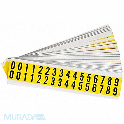 Number Labels Kit Adhesive Type Removeable and Repositionable Adhesive Application General Identification Wire and Cable Labeling APWA Compliant Color No Background Color Yellow Character Color Black Character Color Gradient Solid Color Character Height 5/8 in Character Outline Color Not Applicable Character Type Numbers Characters Included 0 to 9 Die Cut Yes Embossed No Font Gothic Includes (1) Sheet of 6 to 9 Indoor/Outdoor Usage Indoor Only Letter Casing Uppercase