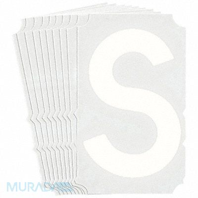 Numbers and Letters Labels Adhesive Type Permanent Adhesive Application General Identification APWA Compliant Color No Background Color Not Applicable Character Color White Character Color Gradient Solid Color Character Height 6 in Character Outline Color Not Applicable Character Type Letters Characters Included S Die Cut Yes Embossed No Font Gothic Includes (10) Labels Indoor/Outdoor Usage Indoor/Outdoor Letter Casing Uppercase Material Polyester