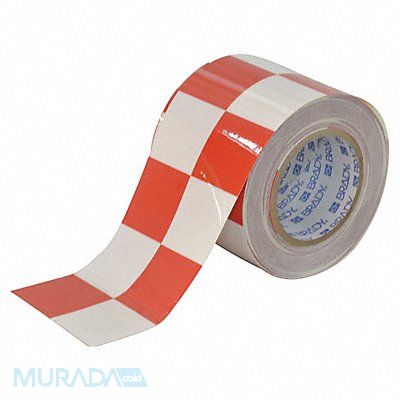 Floor Marking Tape Continuous Roll Checkered Red/White 4 in 100 ft 8 mil Polyester Brady(R) ToughStripe(R) Series B-514 Legend No Legend Glow In The Dark No Retroreflective Grade Non-Reflective Tape Finish Gloss