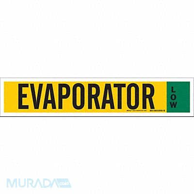 Ammonia Pipe Markers Pipe Marker Mounting Style Adhesive Pipe Marker Pipe Marker Legend Evaporator Low Legend Text Color Black IIAR System Abbreviation (Blank) Background Color Green Yellow With or Without Arrows Without