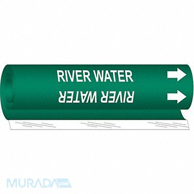 Pipe Marker Pipe Marker Mounting Style Wrap-Around Pipe Marker Pipe Marker Legend River Water Legend Text Color White Character Height 3/4 in Background Color Green With or Without Arrows With